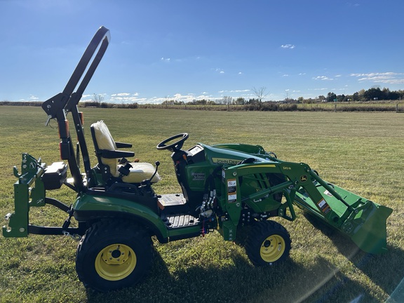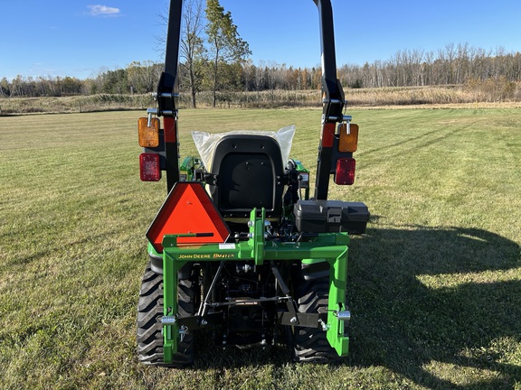 2025 John Deere 1025R Tractor. Hydrostatic Transmission with MFWD. Open Operator's Station. Factory Installed Loader with Single Point Hydraulic Coupler and Bucket. iMatch™ Quick Hitch (Category 1). R4 Industrial Tires.
