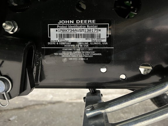 New 2025 John Deere X734 Garden Tractor, all wheel steering, fuel injected engine, power steering, power lift, shaft drive, tilt steering and cruise control.