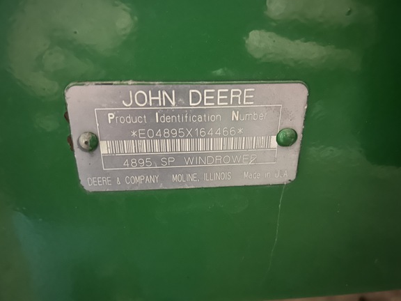 2002 John Deere 4895 Windrower. 895 18' PowerReverser head, sickle knife cut, rubber roll conditioner, 460/85R26 front drive tires.