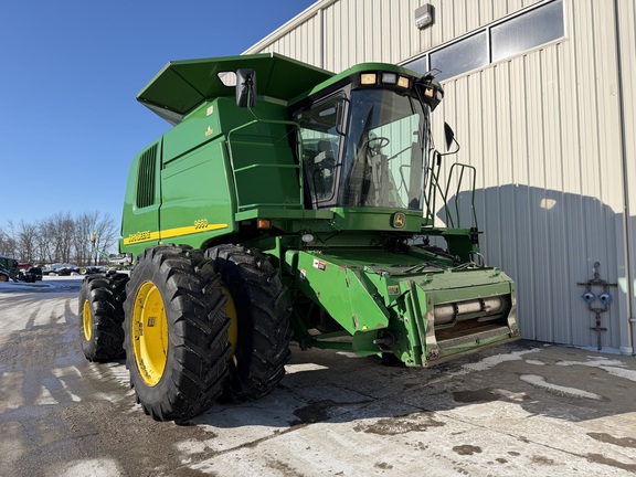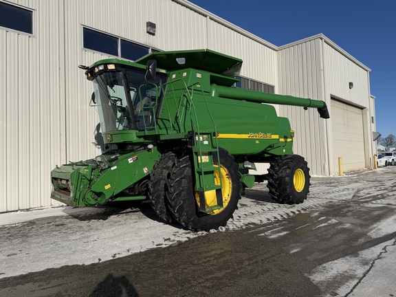2004 John Deere 9660. Heavy duty variable speed feeder house. Hi Capacity lift cylinders. Deluxe header controls with header height sensing. Chopper. 4WD. Coolant heater. HID lights. Power heated mirrors. Chaff spreader. Single point. 750/65R26 rear tires and 520/85R42 front duals. Very sharp local trade. Call today for details!
