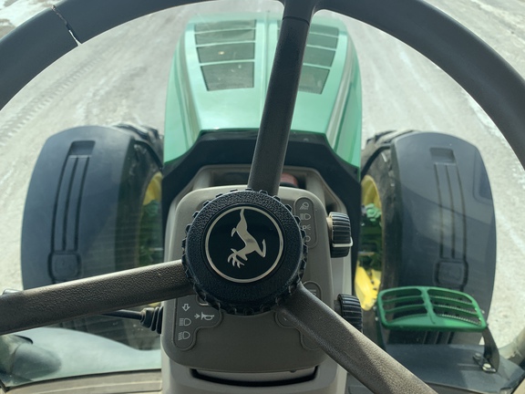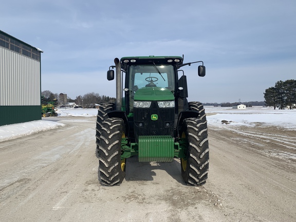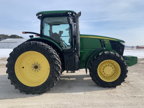 2012 John Deere 7280R Row Crop Tractor. Equipped with IVT RHR, 1300 front axle, 59 gpm hyd pump, 4 rear scv's, 540/1000 pto, 16 front weights, HID lights, Active Seat, 7" color display screen, 480/80R50 rear duals with 1,400 lbs. rear inner wheel weights, 420/85R34 single fronts with front fenders, high vert load Cat 3 drawbar. Local trade from vegetable farm.
