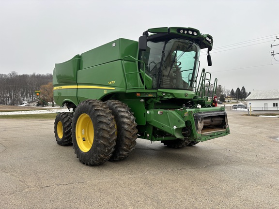 John Deere S670, 2WD, Duals, Chopper, Yield Monitor, Contour Master, Fore/Aft, Premium Cab with Premium Radio Standard Lighting and Header Extremity Lights. AutoTrac Ready with Harvest Monitor Touchscreen 7 In. Color Display 3 Speed Transmission Electric Shift High Torque, Variable Speed Drive System Round Bar Concave Deep Tooth Adjustable Chaffer and Bottom Sieve with TouchSet TriStream Rotor Extended Wear 22.5 Ft Manual Adjust Vane Tailboard Great Machine!!!! Local Trade!!!