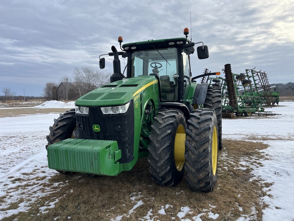 2015 John Deere 8295R IVT 50K, ILS MFWD, Premium Cab with Suspension, Premium Lights, Leather Package, Dual Hyd Pump, 4600 with Autotrac Row Sense and Section Control, 22 Front Weights, 2800lb Rear Weight, Hyd Trailer Brakes, Front and Rear Fenders, 540/1000 PTO, Active Command Steering, Electric Mirrors, and Cold Start. 420/85R34 Michelin Front Duals, and Dual 480/80R50 Firestone Rears. Local One Owner, Call Today!