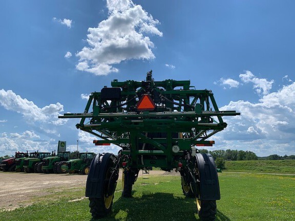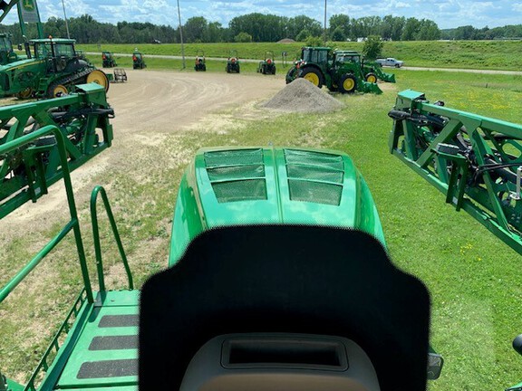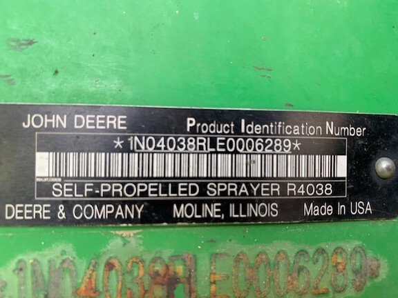 2015 John Deere R4038. 120' autoboom leveling. 15" spacing. Commandview II Plus cab. Standard solution pump. Manual solution control. Front fill. Stainless steel eductor. Foam marker. Boom air purge. Wheel slip control. HID field lights. Rh/Lh fence row nozzle. 380/90R46 tires. Very nice sprayer. Farmer owned, well maintained, stored indoors. Call today for more information.