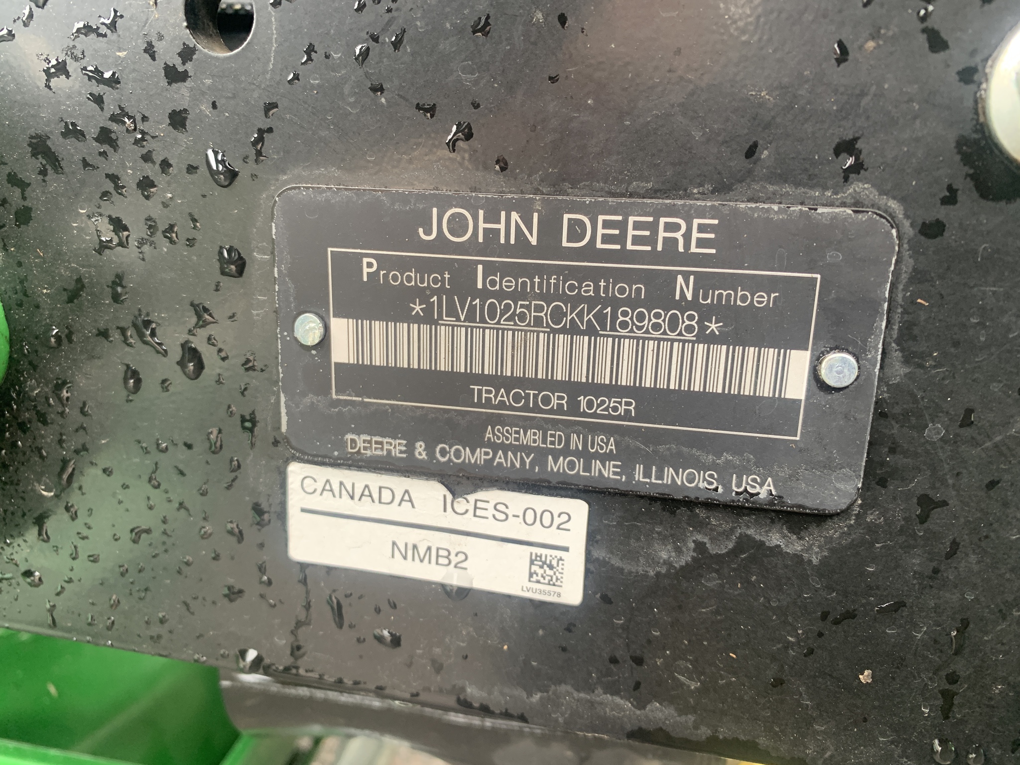 2019 John Deere 1025R Compact Tractor with 120R Loader and Bucket comes with 2019 John Deere 54D Mid Mount Mower Deck. Nice Package, call today!