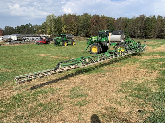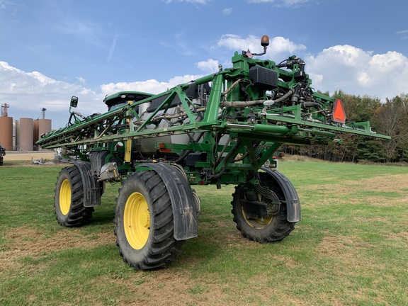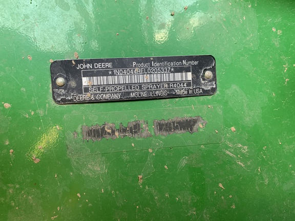 2020 John Deere R4044 with 120' ExactApply. 20 inch spacing. 1200 Gallon Stainless tank. Automatic Solution Control. Front Fill (separated). Stainless Steel Eductor. Foamer System. BoomTrac Pro Height Control. Gen4 Display with Extend Monitor. SF6000 Receiver. AutoTrac and Premium3.0 Activations. 380/90R46 Row Crop wheels and 650/65R38 Float wheels. Booms are solid and straight. Great priced 1200gallon 120' ExactApply machine, call today!