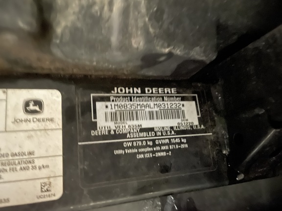 2020 John Deere 835M. Power steer. Power dump. Roof/windshield/rear window. New tires. Great machine!