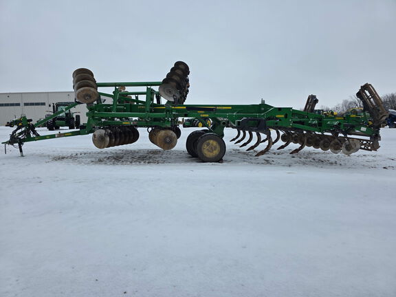 2023 John Deere 2730 18' Mulch Ripper. 9 Shank, Truset depth control, CAT V nodular hitch link, knife edge rolling basket. 445/50R22.5 tires. Very nice! Call for details.