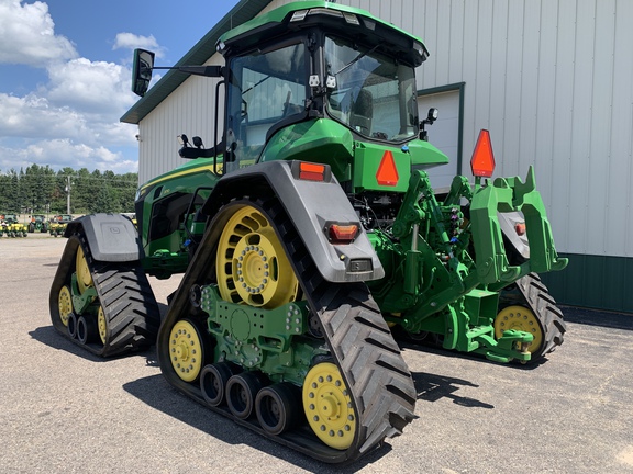 2023 John Deere 8RX 370 Track tractor. JD Signature edition, IVT transmission with Command Pro, Ultimate cab with suspension, ultimate lighting, 84 GPM pump, 6 rear SCV's, 1000 PTO, 24" front and rear tracks, 120" spacing, 4600 command center with 4.0 activation, 20K three-point lift capacity, full rack of front weights. Powertrain extended warranty till 10/25/2028 or 3000 Hrs.