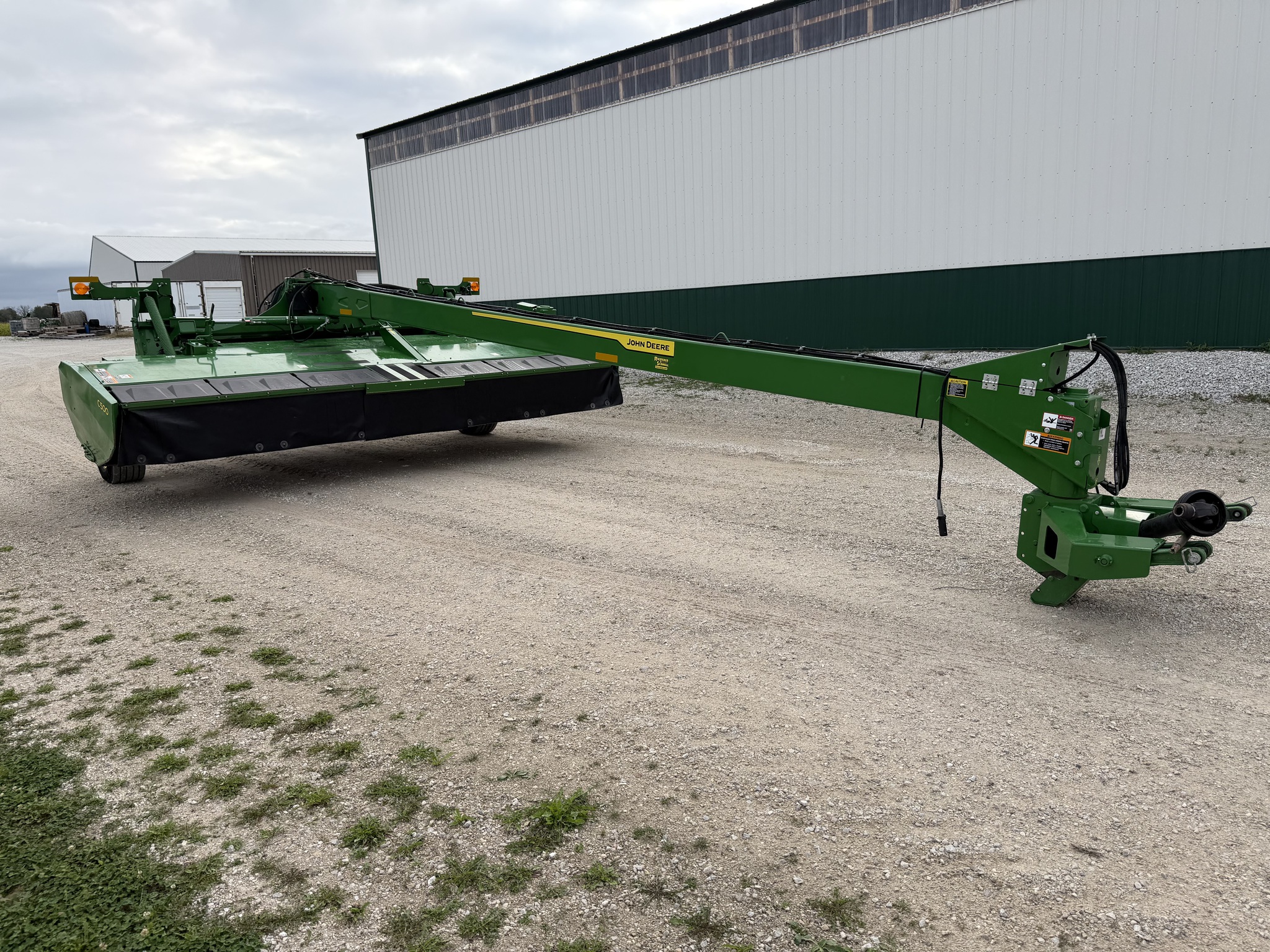 2023 John Deere C500 center pivot mower conditioner, 16' cut, impeller conditioners, hydraulic header tilt, just over one year of use on this nice unit.