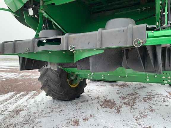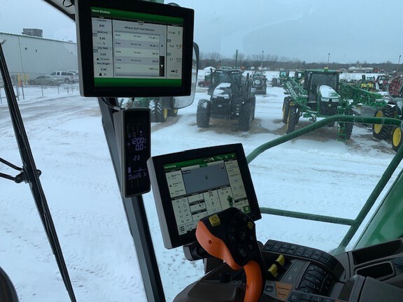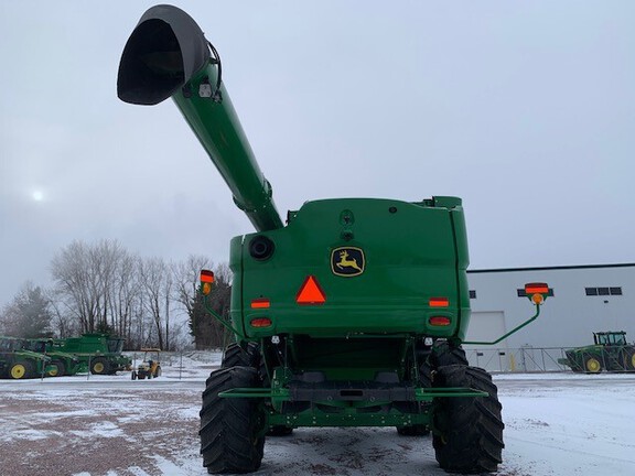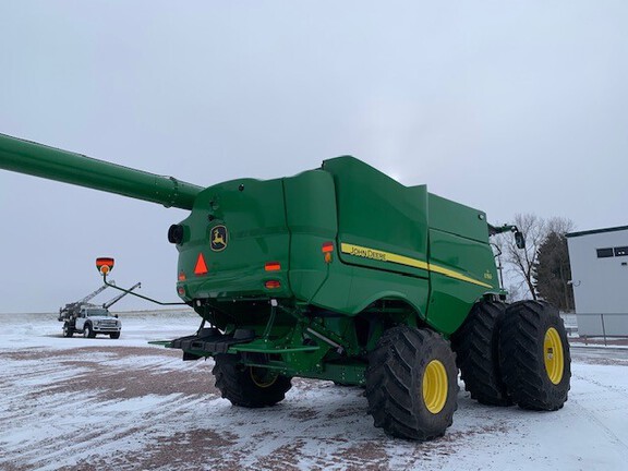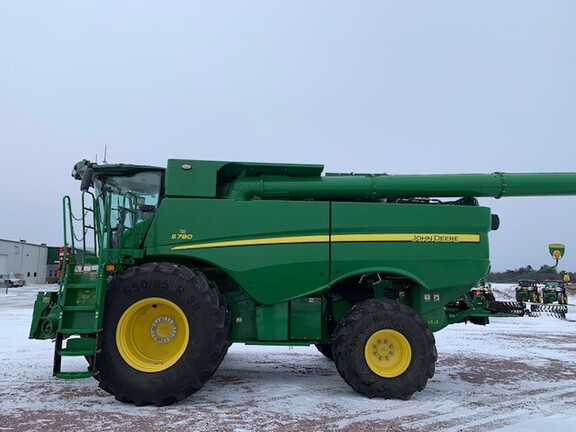 2023 John Deere S780 Combine. Prodrive transmission, 5 speed feeder house, PRWD, active yield, folding grain tank covers with extensions, active concave isolation, power cast tailboard, 26' unloading auger, extended wear throughout machine, 650/85R38 duals, 750/65R26 rear tires, premium cab, machine sync ready, tool cabinet. Powertrain extended warranty till 9/27/2027 or 1500 hours. This is loaded!!