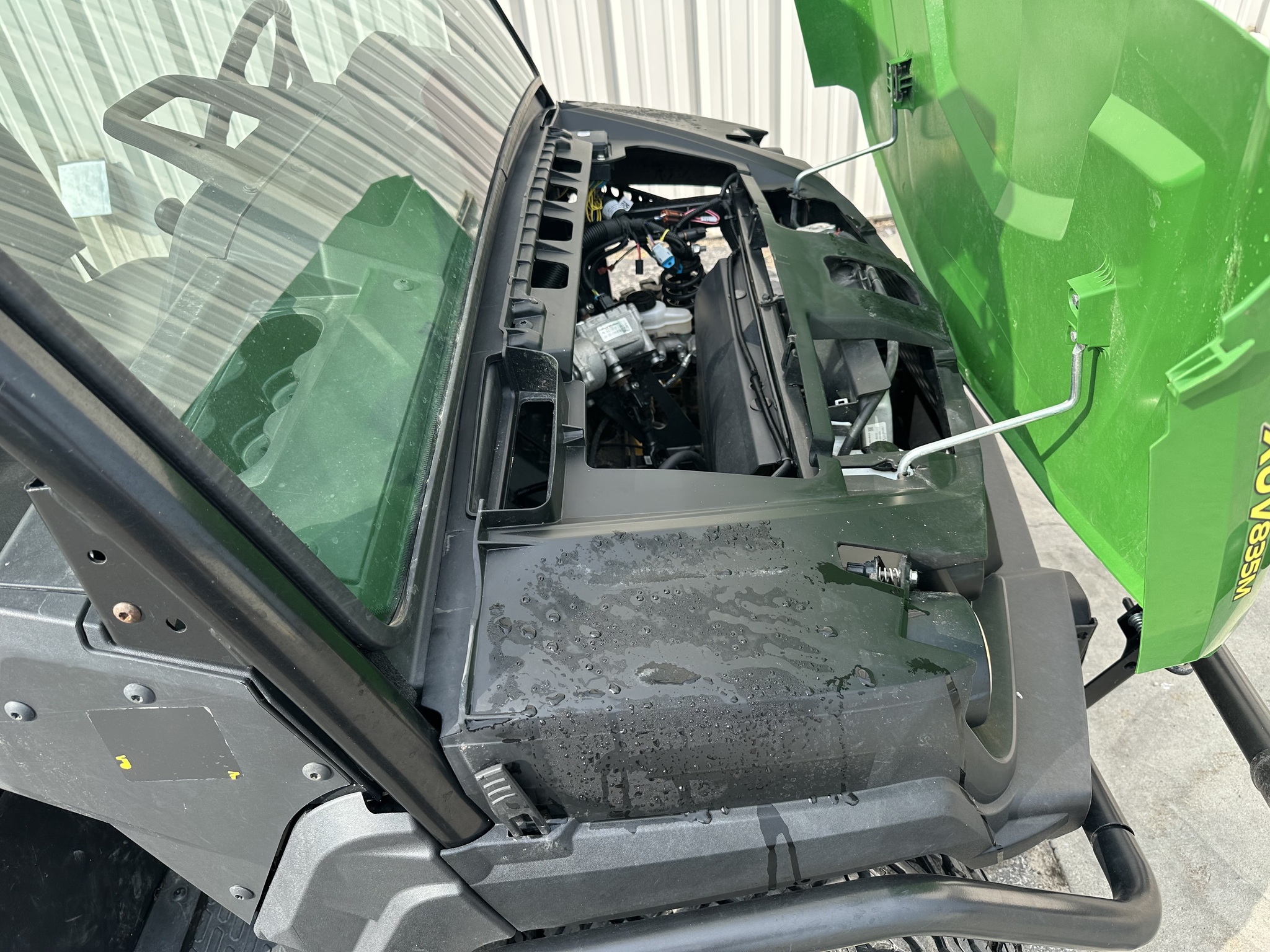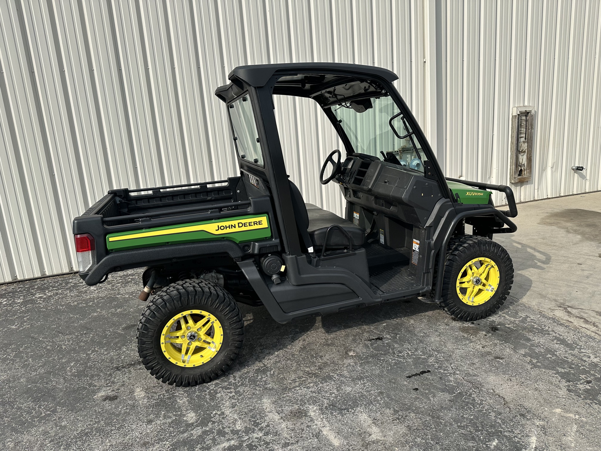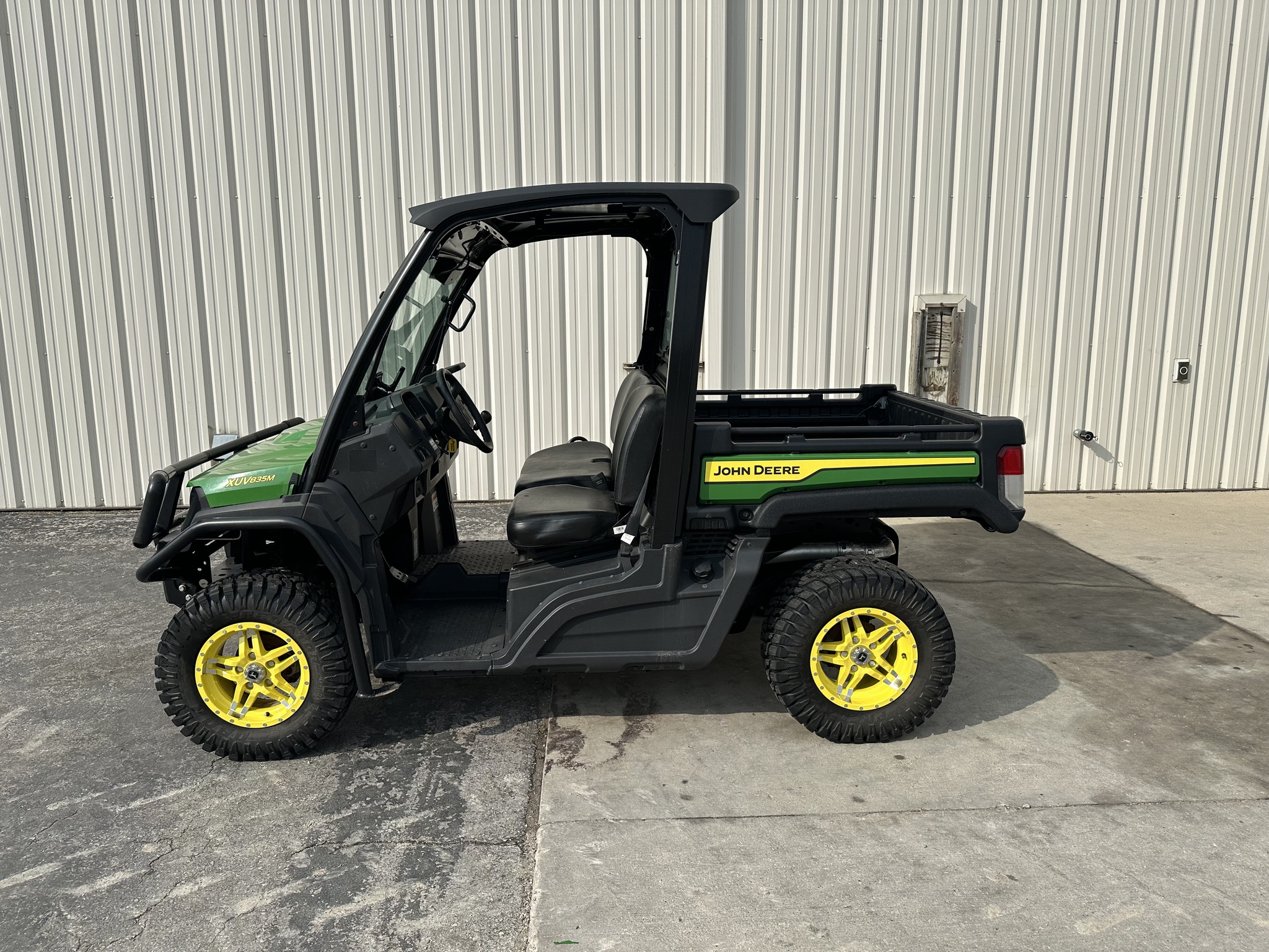 2023 John Deere XUV 835M. One owner local trade. Hard surface tires. Black bench seat. Park position in transmission. Spray in bed liner. Brake and tail lights. Power dump. Nets. Roof. Windshield and rear panel. Front brush guard and fender guards. Very well maintained. Call today for details!
