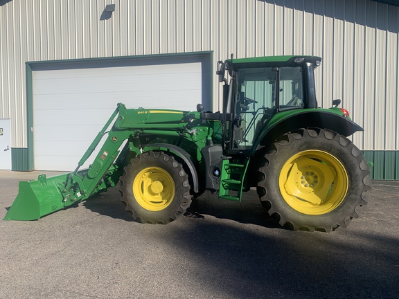 2024 6130M with 620R loader, 24/24 powerquad, economy light package, HD alternator, electrical 2 function joystick for loader, standard cab with right hand console, radio, 3 mechanical rear SCV's, sway blocks, flange rear axle, 460/85R38 rears, 420/85R24 fronts, TLS, turnable front fenders, mechanical cab suspension, cold start package, beacon light. 620R loader has mechanical self leveling, two function, 85in HD bucket with grapple brackets. Don't miss out!