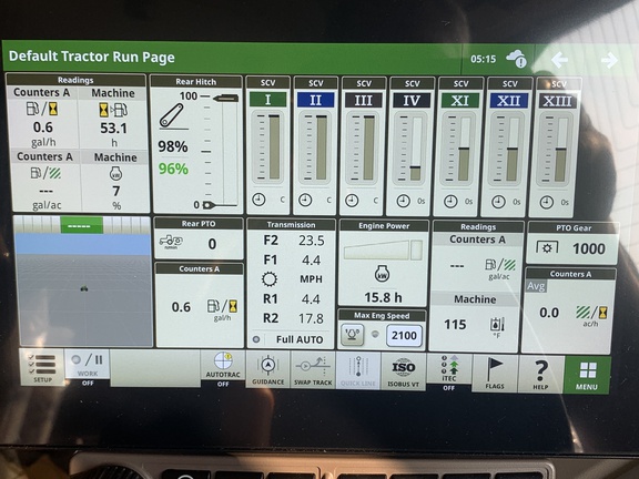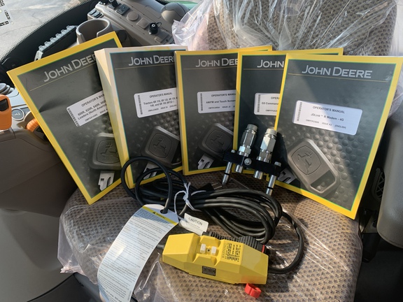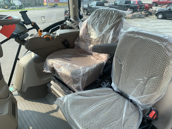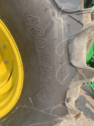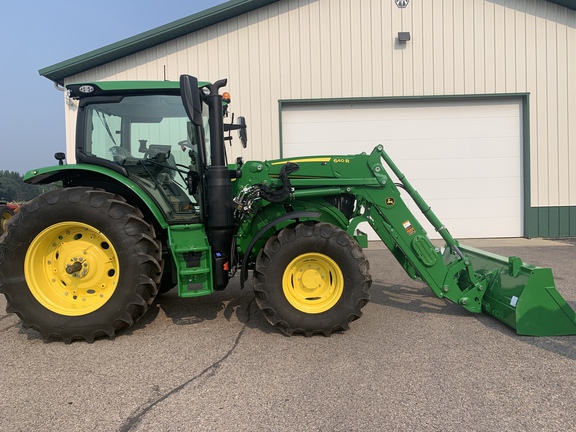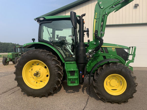2024 John Deere 6R 130 with 640R loader. 40K IVT, premium cab, premium seat, cab suspension, command arm, 4 electronic rear SCV's, 540/540E/1000 PTO, sway blocks, R&P rear axle, adjustable cast wheels, 520/70R38 rears, 480/70R24 fronts, TLS, rigid front fenders, heated rear window, cold start package II, fuel tank bottom guard, higher 3pt hitch lift capacity, panoramic roof, premium light package, front base weight. Loader has 3rd function and mechanical self leveling. Rear tires are filled with rimguard. Don't miss out!