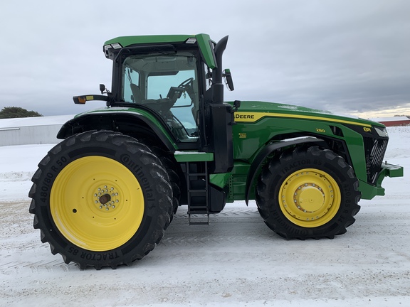 2024 John Deere 8R 280 16 speed power shift, ILS, Rear duals, Premium Comfort, Premium Visibility, 5 Remotes, front weights, rear wheel weights, G5 Command Center, integrated receiver, Factory warty till May of 2026 Followed by Ext. warty till May of 2027. Cal today before this tractor is gone.