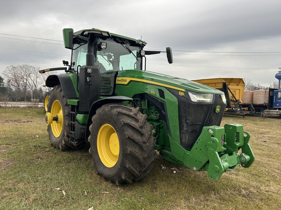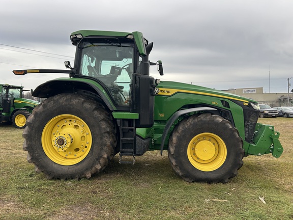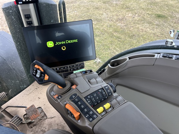 2025 John Deere 8R 370 IVT 50K, Command Pro Control, Dual Hyd. Pump with 5 Remotes, Active Command Steering, Rear 710/42 Duals, Ultimate Cab, Ultimate lighting, rear weights, Front PTO, front 3-Point, Very clean one owner tractor, Factory wrty. remaining, followed by Ext. wrty, call today before this unit is gone.